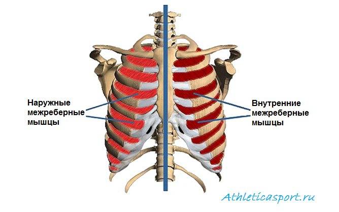Наружные межреберные мышцы расположены на поверхности в промежутках между ребер, от позвоночника и до хрящевой реберной ткани. Берут свое начало от нижнего края ребер, а крепятся уже к верхнему краю нижележащего ребра. Основной их функцией является подъем ребер.