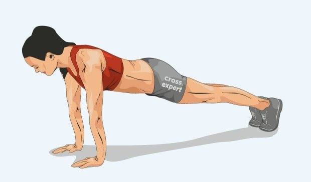 Теперь – облегченное упражнение, для тех, кому сразу не по плечу классика. Этот вариант отличается от стандартного тем, что не нужно отжиматься от пола: