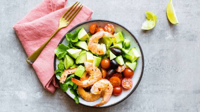 - Обед: 100 г креветок, тушеных с кабачком, оливковым маслом, сыром и рукколой