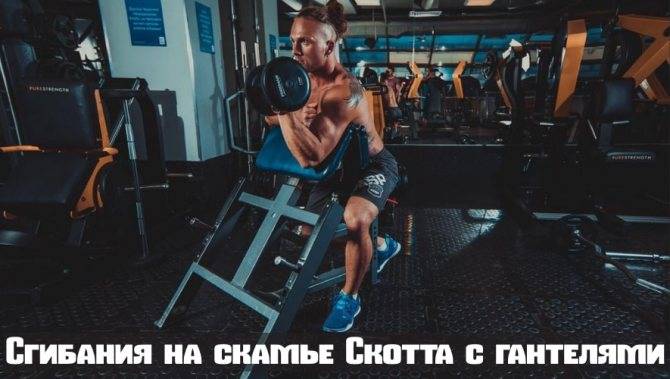Сгибания на скамье Скотта с гантелями