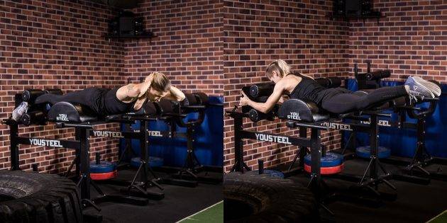 Это упражнение часто используется в начале тренировки для разогрева и укрепления спины, ягодиц и мышц задней поверхности бедра.