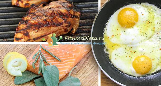 Рекомендуется в течение часа после пробуждения потреблять около 20–30 г белка. Очень хороши с утра вареные яйца (порция приблизительно такая: одно целое яйцо и два яичных белка) или протеиновые коктейли.