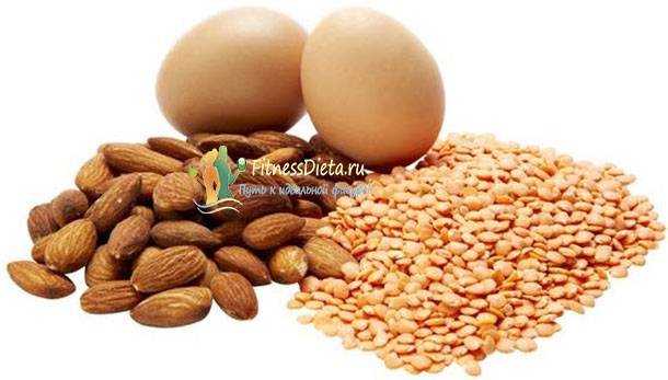 Из растительных продуктов для роста мышц богаты белком бобовые – особенно соя и чечевица, брюссельская капуста, шпинат, орехи, крупы – киноа, булгур, гречка и т.д. Но для нестрогих вегетарианцев, желающих нарастить мышцы, а также для тех, кто не очень любит мясо и рыбу, лучшим источником легкоусвояемого белка будут яйца. Конечно, есть надо их белок – по возможности: он настолько лёгок, что в день можно съедать до 10 яиц без желтка, а вот с желтком – только 2 яйца; при этом не стоит забывать, что норма для здорового человека – 3-7 целых яиц в неделю.