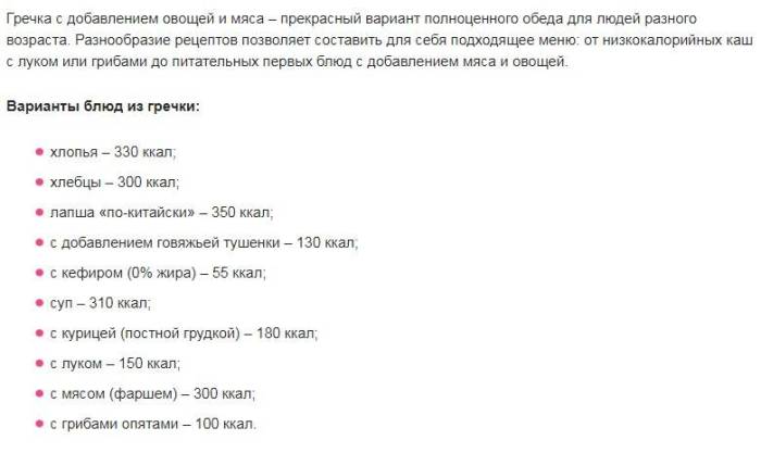 Гречка для похудения — калорийность гречки в зависимости от способа приготовления