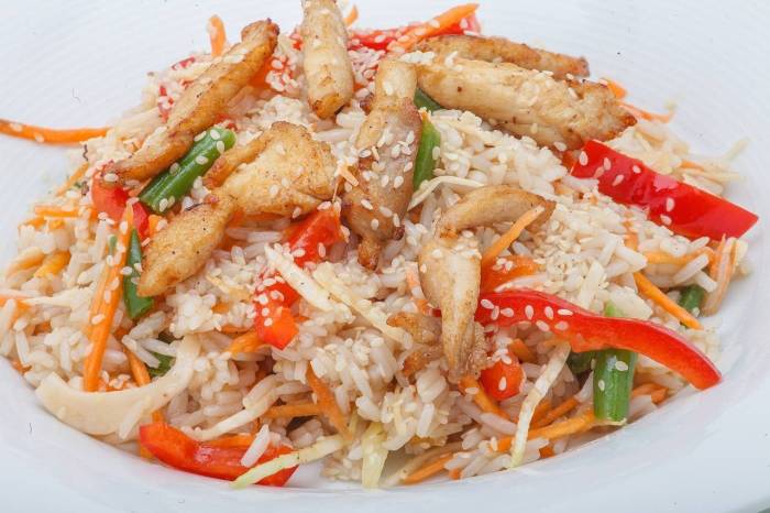Фунчоза с овощами и курицей в соевом соусе