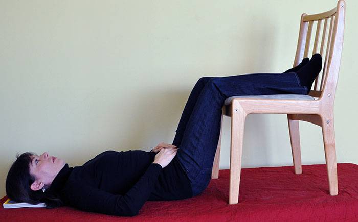 Лежа спиной на полу, обхватить колени руками и подтяните их к груди, при этом можно отрывать от пола низ спины. В таком положении нужно застыть на 15-30 секунд.