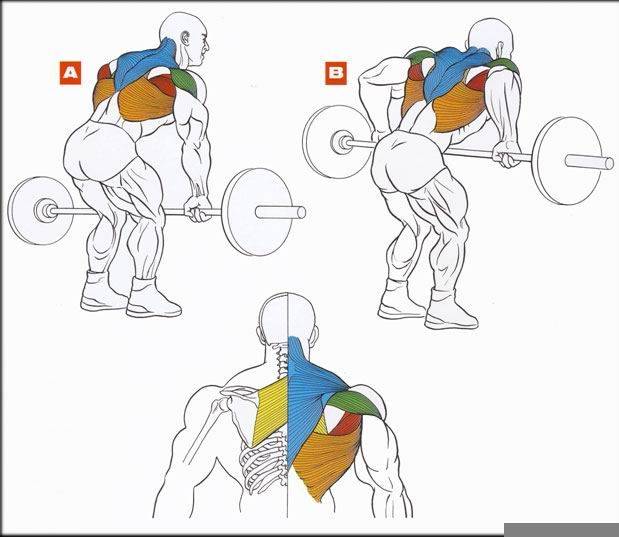 - для проработки верха спины хват должен быть уже.