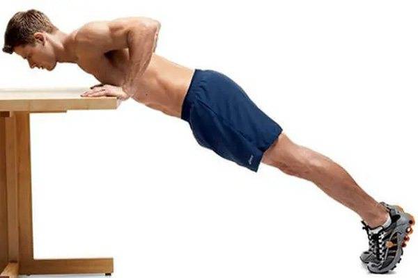 Отжимайтесь от стола. Выполнение отжиманий выше горизонтального положения способны подготавливать мышцы к упору лежа. Техника уже напоминает отжимания от пола, но позволяет снизить нагрузку на мышцы. Постепенное увеличение количества повторений приведет к тонусу необходимых мышц, выполняя максимальное количество повторений.