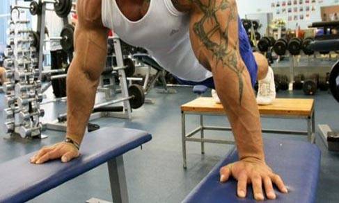 Чем выше ноги, тем меньше нагружаются мышцы груди и тем большая нагрузка ложится на трицепсы и дельтоиды.