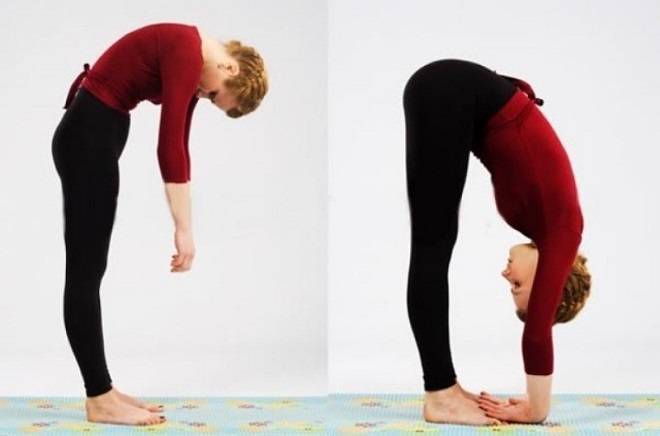 - наклоны вперед, доставая руками до пола или прижимаясь лбом к коленям;