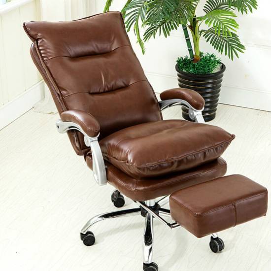 Кожаное кресло – хороший выбор для офисного помещения благодаря удобной спинке и мягкому сиденью, наличию подлокотников и подставки под ноги. Такой вариант обычно представлен в нескольких решениях: