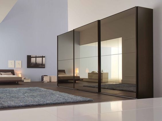 Чтобы визуально расширить пространство в небольшой комнате следует подбирать цвет мебели под обои. Лучше всего шкаф-купе сочетается с зеркалом. Обладателю большого помещения можно обыграть интерьер и к светлым стенам подобрать темный шкаф