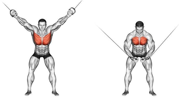 Техника выполнения сведения рук в кроссовере требует, чтобы вся нагрузка была направлена на область груди, но подвижным является плечо.