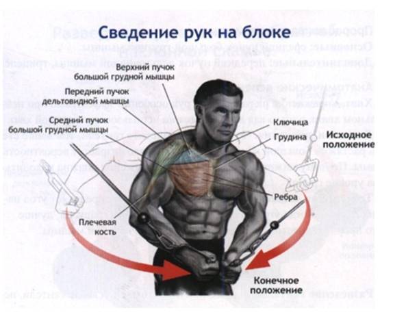 - большая и малая грудные, волокна зубчатых мышц – именно они «тянут» тросы и сводят руки;