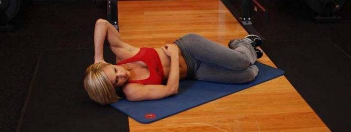 Такой вид упражнений отлично тренирует боковые мышцы пресса, как внутренние, так и внешние. Лягте на бок на ровную поверхность. Свободную руку согните в локте, прикасаясь ладонью к виску. Другую руку положите вдоль туловища. Медленно потянитесь локтем к ногам и возвращайтесь в изначальное положение. Сделайте 15 подходов и перевернитесь. Повторите те же действия на другом боку.