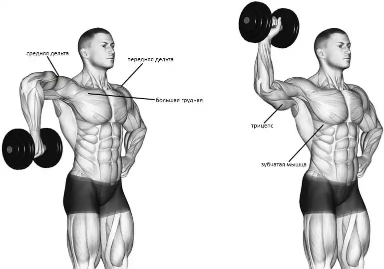 Упражнение относится к классу условно-базовых (компаундных) с типом силы push/толкать, имеет своей целью проработку плеч. Мышечный ансамбль включает в себя следующие единицы: