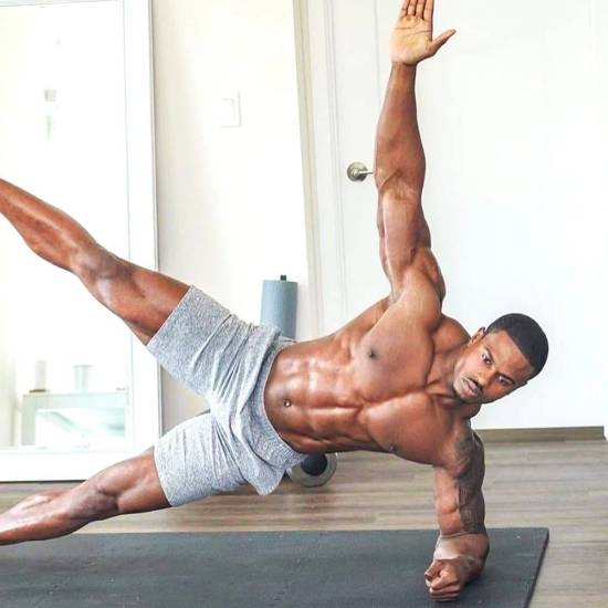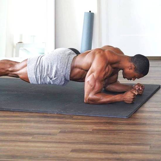 Выполнять упражнения можно не только при помощи спортивных снарядов, но и со своим весом. Потребуется принять упор лежа, левая рука опирается на предплечье. Ладонь правой руки необходимо положить на плечо противоположной руки. Из данного положения мужчина должен повернуть корпус тела на левую сторону, чтобы тело находилось под прямой линией. После этого необходимо вернуться в исходное положение.