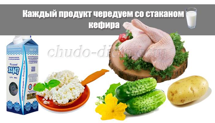 Кефирная монодиета рассчитана на 5–6 дней. Она относится к разряду сложных, так как её рацион предусматривает употребление только 1 литра кефира (1% жирности) и фруктов или ягод (не более 1 кг в день) либо овощей (также не более 1 кг в день). В период экспресс-диеты на кефире нужно также выпивать около 2 литров чистой воды, разрешено пить зеленый чай.