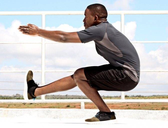 - Приседания — 2 сета по 12 повторов в каждом.
