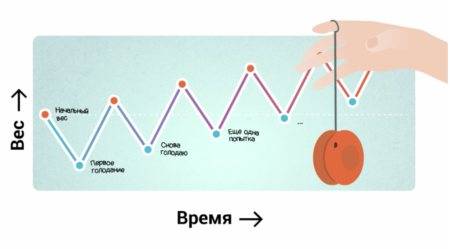 Любые строгие диеты и жесткие ограничения, как правило, приводят к срывам и откатам. Это защитный механизм метаболизма и психики, которые должны заботиться о выживании человеческого организма.
