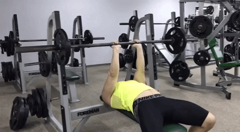 - Начинаем опускать штангу до грудной клетки, поднимаем, пока руки полностью не выпрямятся. В пиковой точке снаряда можно задержаться на секунду.
