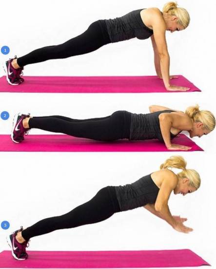 - Опускайте таз вниз и сгибайте руки, одновременно делая вдох.