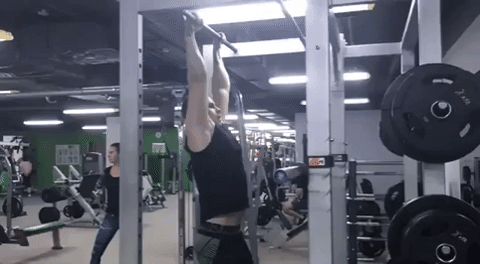- Плечи расправьте назад, все тело напряжено. Потяните вес тела вверх. Сосредоточьтесь на том, чтобы все мышцы максимально включились в это движение вверх, привлечении каждой мышцы верхней части тела, чтобы помочь вашим восходящим усилиям. Двигайтесь медленно, пока подбородок не окажется над перекладиной.