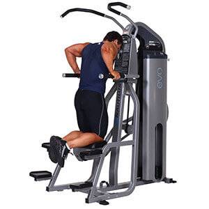 Примечание: далеко не во всех линейках тренажеров есть функция вращения брусьев, для подбора более удобной ширины хвата. Чем шире ладони друг от друга, тем сильнее растягиваются грудные, и нагрузка на трицепс уменьшается. Если постановка рук более узкая (если предусмотрено в тренажере), тем сильнее работают трицепсы.