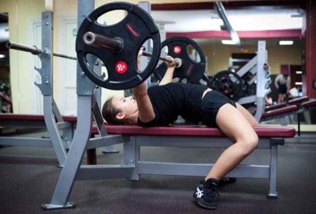 Затем нужно выполнить сам жим, то есть поднять штангу вверх на выпрямленные в локтях руки. Необходимо следить, чтобы таз оставался на лавке, не отрываясь от нее. Движения делайте не резко, а медленно и плавно.