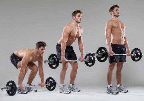 Фото 1. Техника выполнения классической становой тяги со штангой. При выполнении упражнения спину необходимо держать прямо.
