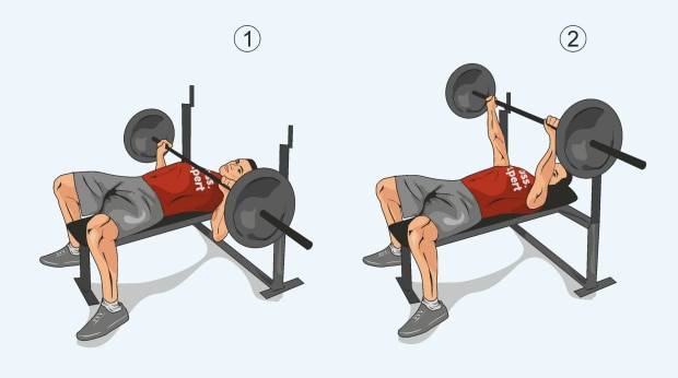 | Жим штанги лежа | 4х12,10,8,6 | ![]() |