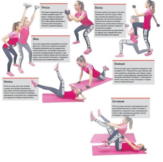 - Если сразу вам будет тяжело выполнить все упражнения и несколько подходов, то можете сократить количество повторений каждого упражнения (ну или урезать подходы).