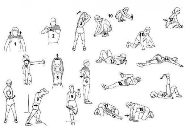 Фото 3. Пример заминки после круговой тренировки. Комплекс состоит из девяти упражнений, можно выполнить за 10 минут.