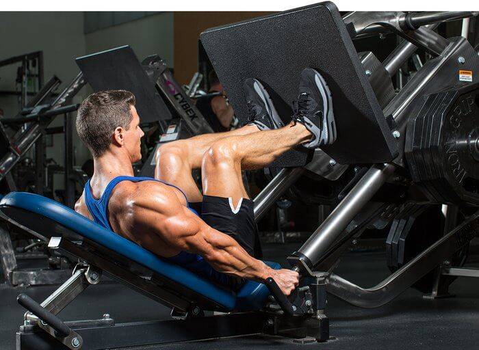- жим ногами — 3 сета по 12–15 повторов;