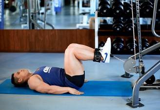 Очень важно делать именно скручивания. Движения в тазобедренном суставе не должно происходить.