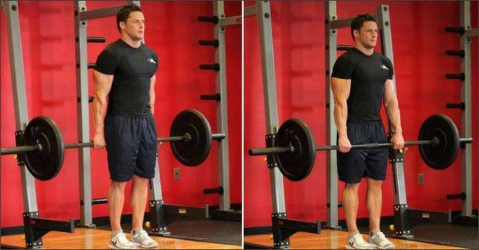 Вес штанги должен быть таким, чтобы Вы могли поднимать плечи вверх в максимальной амплитуде. Слишком тяжелая штанга обязательно сократит амплитуду движения и, во время опускания плеч, они будут непроизвольно двигаться вперёд, что приведёт к скруглению спины и как следствие к травме. Во время упражнения плечи должны двигаться строго вверх и вниз. Нельзя делать вращательные движения – это может привести к травме, потому как нагрузка переместится с трапеций на плечевые суставы.