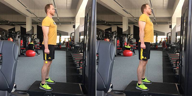 очень важно следить за прямым положением рук, за отсутствием наклона в туловище, за отсутствием сгиба в коленях. Необходимо просто пожать плечами, достигая в верхней точке пикового сокращения.