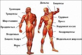 Далее идут ноги, которые включают в себя икроножные мышцы, квадрицепсы и заднюю поверхность бедра. Каждая группа состоит из отдельных мышц, которые в совокупности обеспечивают полноценную жизнедеятельность организма и перемещение человека в пространстве.