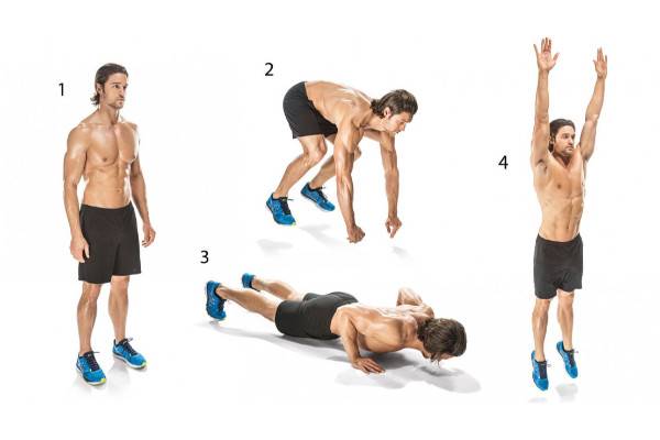 - глубокие приседания и их усложненные вариации с выпрыгиванием и упором лежа;