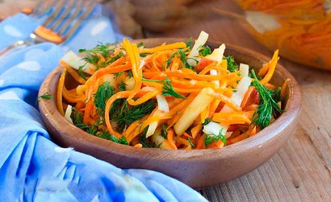 - Подсаливаем салат. Добавляем молотый кориандр, красный молотый перец, измельченные зерна кориандра. Перемешиваем салат, чтобы специи объединились с овощами и яблоком.