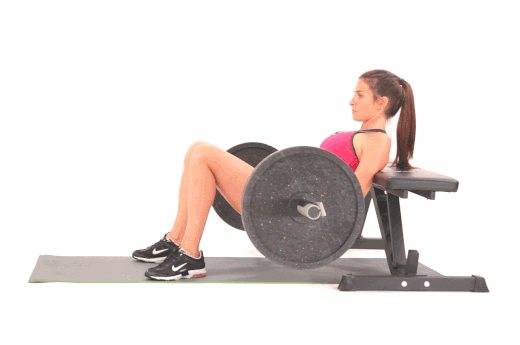 Перед вами усложненная версия подъема ягодиц из положения лежа. Для него понадобится тренировочная скамья и штанга с блинами от 5 до 10 кг (в зависимости от ваших возможностей). Подъем ягодиц со штангой акцентировано прорабатывает ягодицы при участии всех мышц ног. Из-за расположения штанги нагрузку почувствуют и мышцы брюшного пресса.