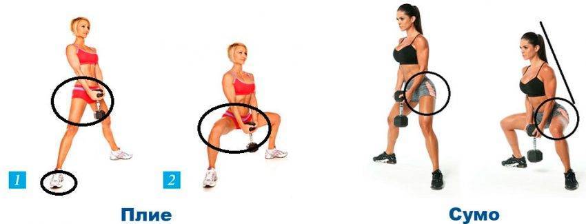 Отличие плие от сумо-приседа