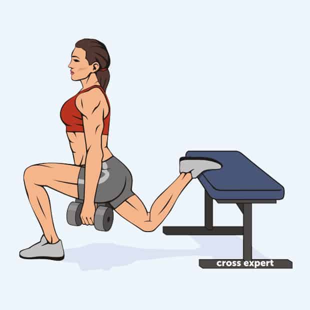 Поставьте рабочую ногу на небольшую ступеньку. Это может быть степ платформа или что-то еще. Опорную ногу отведите назад в соответствии с техникой движения. Выполняя выпады или приседы реверанс таким способом, вы максимально растяните ягодицу, что сделает тренировку еще более эффективной.