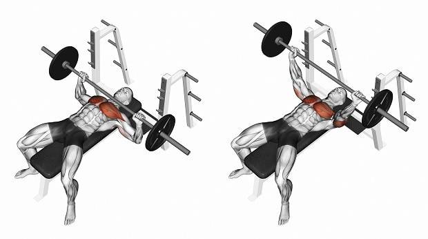 - Меняя уровень движения, например, перемещая штангу слишком высоко или низко от середины груди, появляется вероятность получения травмы, а также подключения в работу прочих мышц, которые снизят эффективность упражнения.